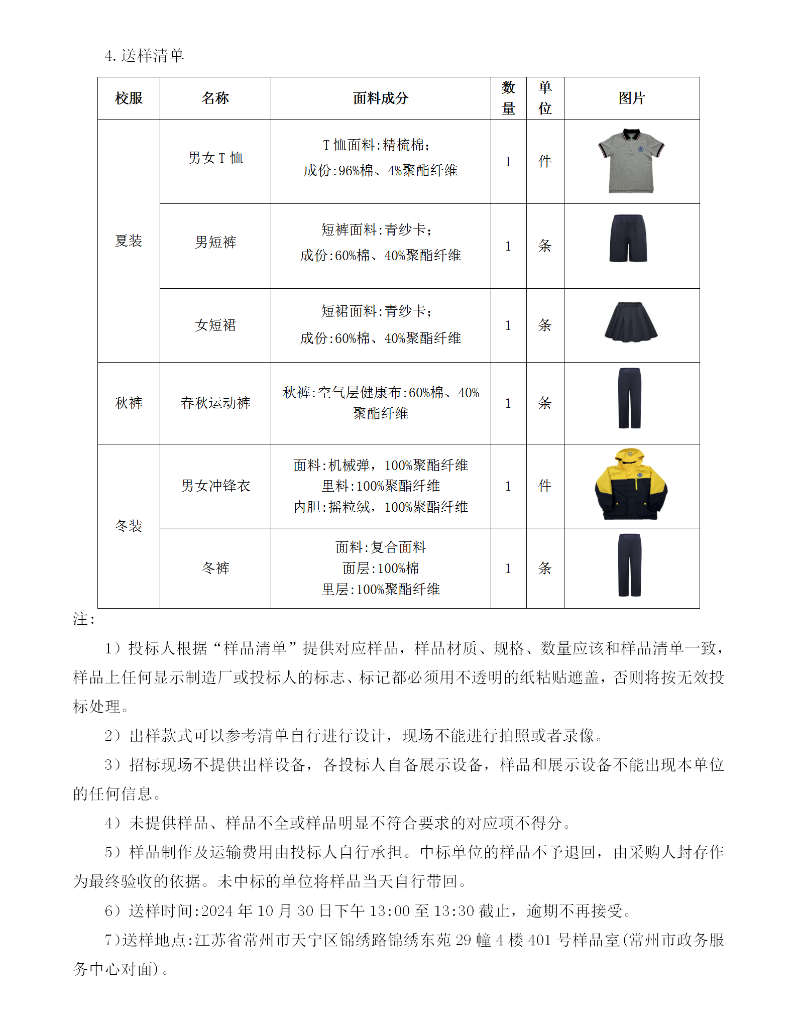 7)送樣地點:江蘇省常州市天寧區(qū)錦繡路錦繡東苑29幢4樓401號樣品室(常州市政務(wù)服務(wù)中心對面)。